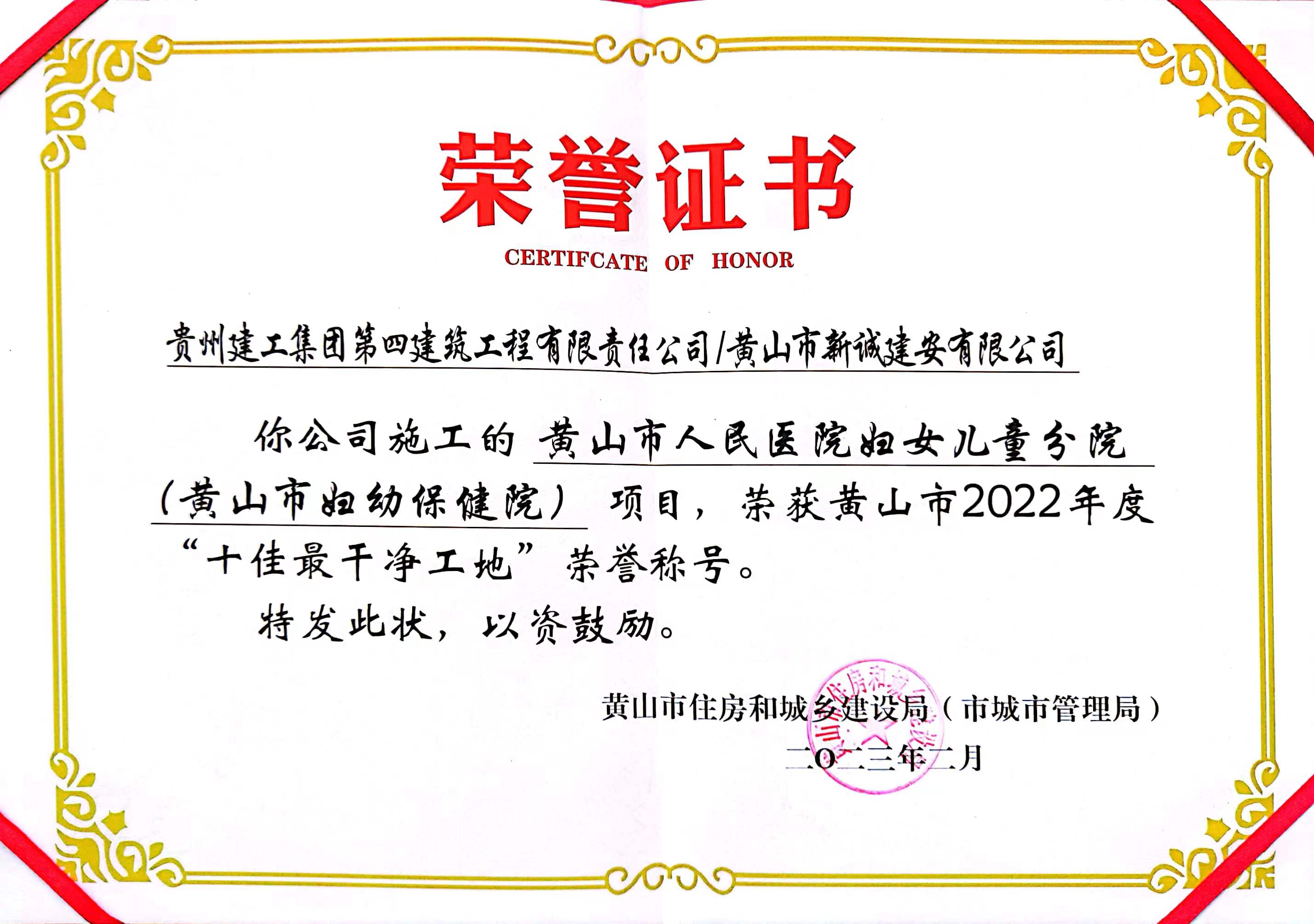 黃山市人民醫(yī)院婦女兒童分院項(xiàng)目榮獲2022年度“十佳最干凈工地”榮譽(yù)稱號(hào)